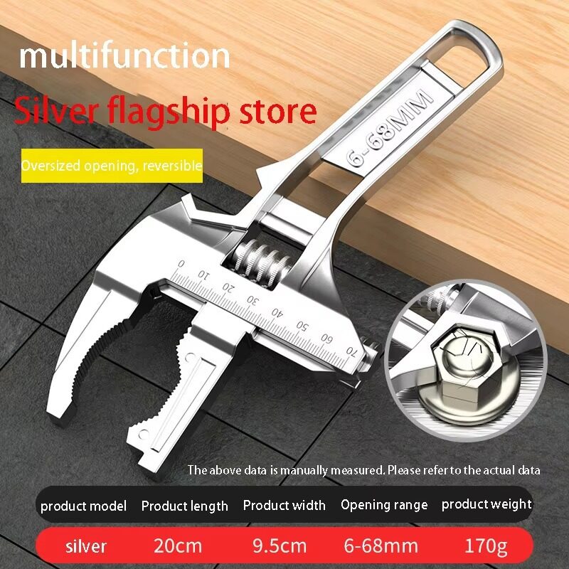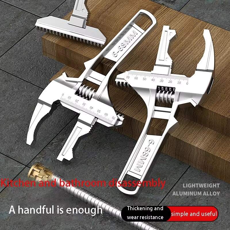 এই মাল্টিফাংশন অ্যাডজাস্টেবল স্প্যানার রেঞ্চটি ঘরোয়া ও প্রফেশনাল কাজের জন্য একটি পারফেক্ট টুল। 6–68mm পর্যন্ত বিভিন্ন সাইজের পাইপ, নাট ও বোল্ট সহজে খুলতে বা টাইট করতে ব্যবহার করা যায়। অ্যালুমিনিয়াম অ্যালয় বডি হওয়ায় এটি হালকা কিন্তু অত্যন্ত মজবুত। ইউনিক ক্ল্যাম্প ডিজাইন শক্ত গ্রিপ দেয়, ফলে স্লিপ হওয়ার সম্ভাবনা কম। রান্নাঘর, বাথরুম, প্লাম্বিং বা মেকানিক কাজের জন্য আদর্শ।